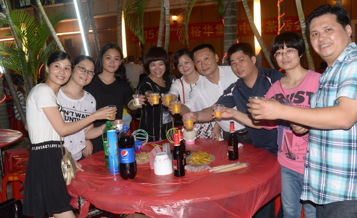 9月27日月圓之夜,裕華集團近600名員工攜家屬,在金鼎酒店露天停車場席開56圍,共同慶祝羊年中秋。