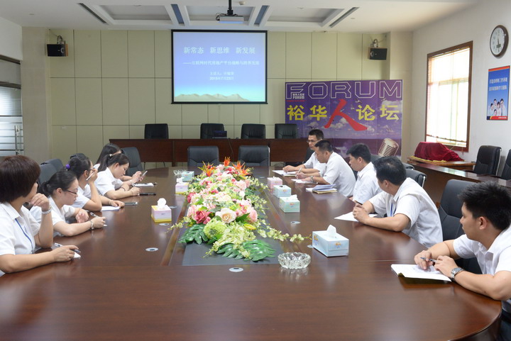 7月24日,集團公司綜合辦在集團八樓大會議室,舉行了一次題為“新常態 新思維 新發展—互聯網時代房地產平臺戰略與跨界發展”的季度學習。