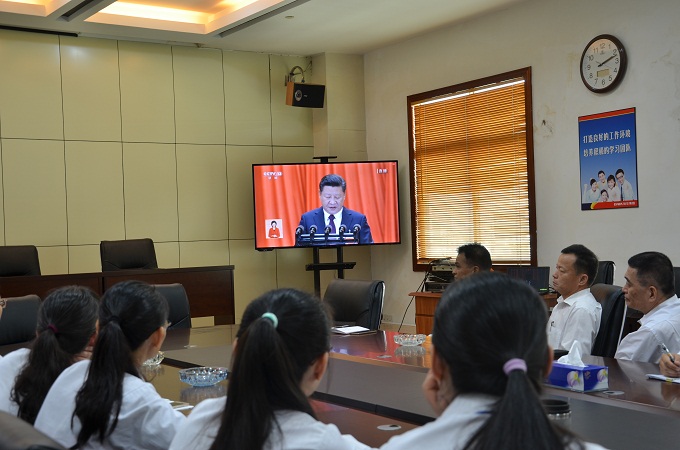 10月18日上午九點,裕華集團總部全體員工,在總部大會議室收看十九大開幕式。