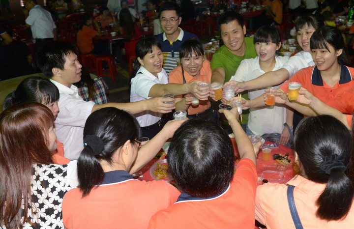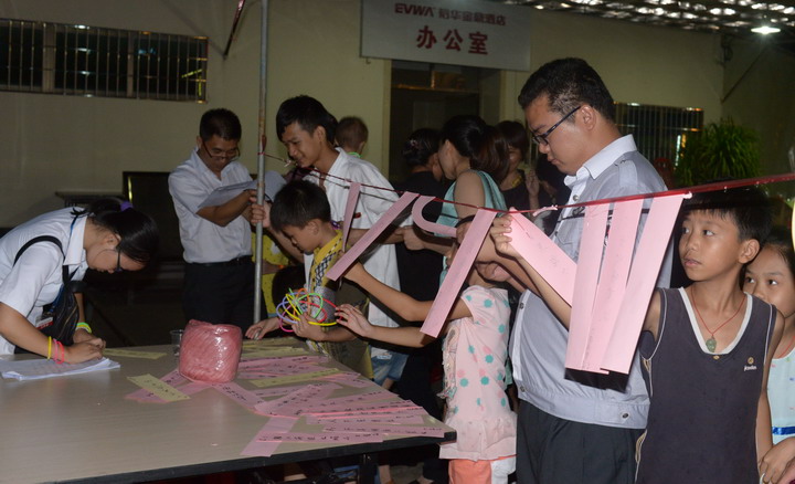 晚(wan)上八點(dian),圓月高高掛(gua)在(zai)天空,在(zai)一(yi)陣(zhen)舒緩的(de)(de)(de)(de)音樂(le)聲中,茶話會拉開了(le)(le)序幕,大(da)(da)家開始品嘗美味的(de)(de)(de)(de)花生、雞腳(jiao)、田螺,喝起了(le)(le)冰(bing)爽的(de)(de)(de)(de)汽水、啤(pi)酒,熱(re)鬧非凡。期間,劉總(zong)依次(ci)走到每席(xi)前,舉杯向大(da)(da)家送上節日的(de)(de)(de)(de)祝(zhu)(zhu)福。這樣的(de)(de)(de)(de)場合里(li),沒(mei)有了(le)(le)工作時的(de)(de)(de)(de)正式和嚴肅,大(da)(da)家互(hu)道(dao)著祝(zhu)(zhu)福,互(hu)敬著啤(pi)酒。一(yi)幫年輕(qing)的(de)(de)(de)(de)同事和小(xiao)學生家屬(shu)(shu),則圍著猜迷(mi)區,為了(le)(le)一(yi)個個燈迷(mi)而絞盡(jin)腦汁。再小(xiao)一(yi)點(dian)的(de)(de)(de)(de)孩子家屬(shu)(shu),則拿著熒光棒(bang)互(hu)相追逐叫喊著。氣氛相當熱(re)烈,相當盡(jin)情。