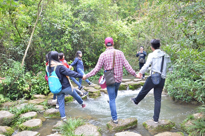 第三個景(jing)(jing)點是(shi)(shi)黃(huang)果(guo)樹,這是(shi)(shi)一個大(da)景(jing)(jing)區(qu),里(li)面再分成三個景(jing)(jing)點,分別(bie)是(shi)(shi)天星橋、陡(dou)坡塘、黃(huang)果(guo)樹瀑布。這個景(jing)(jing)點,可以當作是(shi)(shi)“尋找西游記(ji)足跡”之旅(lv),看到飛流而下的(de)大(da)瀑布,大(da)家的(de)第一感(gan)覺不是(shi)(shi)她的(de)壯觀,而是(shi)(shi)突(tu)然喚醒(xing)了(le)(le)兒時的(de)記(ji)憶,脫口(kou)而出:“哦,原(yuan)來(lai)他們師(shi)徒(tu)(tu)四人是(shi)(shi)從這里(li)走(zou)過的(de)”,感(gan)覺非常的(de)親(qin)切(qie)。在(zai)陡(dou)陂塘里(li),有兩處師(shi)徒(tu)(tu)四人的(de)原(yuan)形雕像,還在(zai)一些(xie)巖(yan)石岸邊(bian)擺了(le)(le)許(xu)多(duo)金色(se)的(de)猴子石像,惟妙惟肖,大(da)家紛紛停下來(lai)拍照(zhao)。也讓人感(gan)嘆景(jing)(jing)區(qu)植入西游記(ji)人物(wu)的(de)元素(su),真的(de)是(shi)(shi)神來(lai)之筆,起到了(le)(le)很好的(de)宣(xuan)傳推廣(guang)的(de)作用。