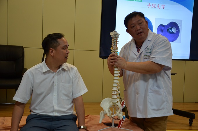 首先,陳(chen)教授針(zhen)對現(xian)場(chang)辦(ban)公室(shi)職員多(duo)的(de)特點,羅列出一些(xie)辦(ban)公室(shi)常見(jian)的(de)手、腰(yao)脊(ji)等常見(jian)疼痛問題,通過圖片分析了(le)問題的(de)起因,展示不正確的(de)辦(ban)公坐姿,及不規范辦(ban)公輔助工具的(de)危(wei)害。當中穿(chuan)插介紹了(le)其(qi)曾接觸(chu)過類似病例,讓大家更全面地了(le)解(jie)情況。