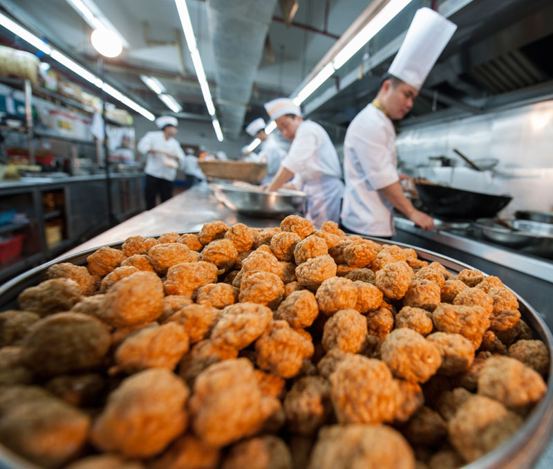 新鮮(xian)的豬(zhu)肉是制(zhi)作黃金酥丸最關鍵的材料(liao)。以(yi)豬(zhu)后臀部(bu)上(shang)(shang)的瘦肉為上(shang)(shang)選(xuan),在當天凌(ling)晨(chen)屠宰生豬(zhu),即(ji)選(xuan)即(ji)做(zuo),這樣(yang)才(cai)能保留豬(zhu)肉的鮮(xian)味和彈性,做(zuo)出(chu)來的酥丸才(cai)爽口味美(mei)。"時間耽誤(wu)不得,要不然就沒法做(zuo)了。
