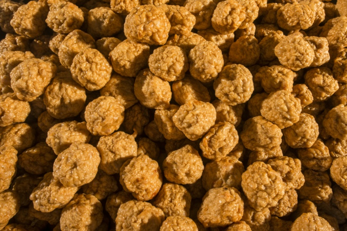 選(xuan)取(qu)里(li)脊肉(rou)和后(hou)腿的(de)瘦肉(rou),制作酥丸(wan)(wan)(wan)除了(le)調味(wei)的(de)鹽(yan)等調料,不(bu)添(tian)加面(mian)粉或其他材料。另一(yi)(yi)個關鍵是水。首(shou)先,不(bu)能(neng)用清水清洗豬肉(rou),要用刀輕輕地(di)刮去(qu)粘(zhan)在肉(rou)面(mian)上的(de)其他雜物,并且(qie)去(qu)掉其中(zhong)的(de)肥肉(rou)。在捶(chui)打(da)瘦肉(rou)的(de)過(guo)程中(zhong),不(bu)能(neng)添(tian)加任何水分,直至瘦肉(rou)捶(chui)打(da)成肉(rou)漿(jiang)成膠狀(zhuang)時,才可以往(wang)其中(zhong)加入鹽(yan)水。為了(le)更(geng)好控制肉(rou)中(zhong)的(de)水分,避免更(geng)多的(de)水分進入肉(rou)丸(wan)(wan)(wan),擠捏(nie)好的(de)丸(wan)(wan)(wan)子不(bu)能(neng)放到水中(zhong)浸泡(pao),而是要放入花(hua)生油(you)中(zhong)浸泡(pao)。擠捏(nie)好肉(rou)丸(wan)(wan)(wan)之后(hou)便(bian)可以下油(you)鍋(guo)(guo)(guo)炸了(le)。在鍋(guo)(guo)(guo)中(zhong)倒入一(yi)(yi)定的(de)油(you),把油(you)溫(wen)(wen)燒(shao)到10℃~20℃,就把肉(rou)丸(wan)(wan)(wan)同浸泡(pao)肉(rou)丸(wan)(wan)(wan)的(de)花(hua)生油(you)一(yi)(yi)起(qi)倒入鍋(guo)(guo)(guo)內(nei),然后(hou)迅速加溫(wen)(wen)使油(you)鍋(guo)(guo)(guo)溫(wen)(wen)度升高至120℃,不(bu)斷地(di)翻動鍋(guo)(guo)(guo)中(zhong)的(de)肉(rou)丸(wan)(wan)(wan)以免肉(rou)丸(wan)(wan)(wan)粘(zhan)連在一(yi)(yi)起(qi)。將肉(rou)丸(wan)(wan)(wan)炸至金黃色,便(bian)可撈出油(you)鍋(guo)(guo)(guo),瀝(li)干其中(zhong)的(de)油(you)就可以了(le)。